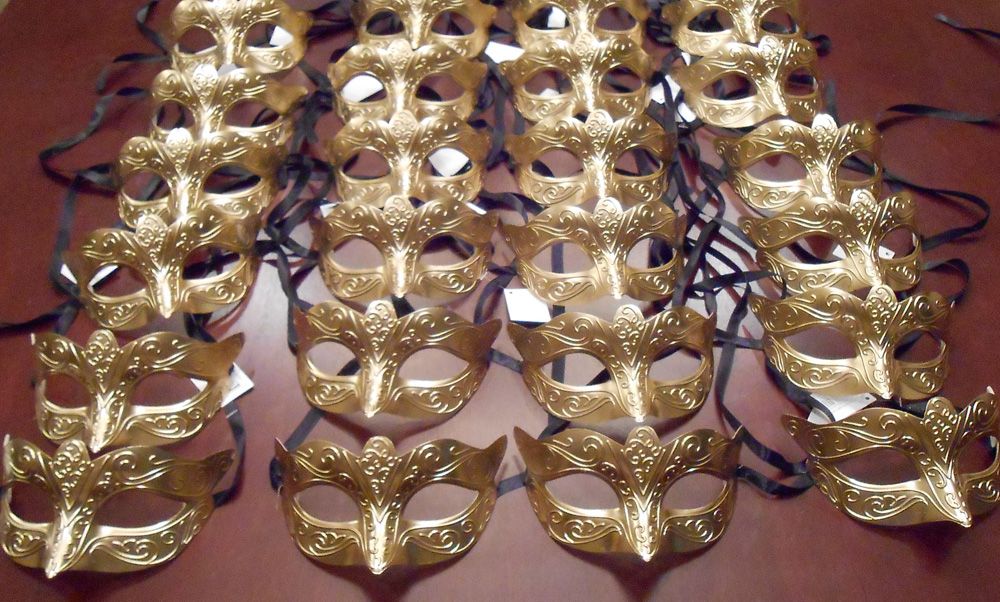 - Includes 24 Venetian-style masquerade masks painted in solid gold with swirl accents