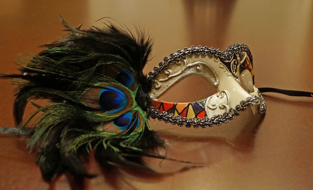 Medellin Feather mask is great for masquerade parties, Mardi Gras, and any Venetian style Event. Mask size without feathers 6"W x 3"H
