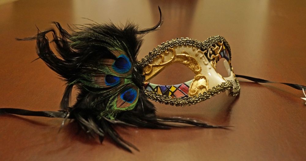 Medellin Venetian mask is great for masquerade parties, Mardi Gras, and any Venetian style Event. Size of mask without feather 6"W x 3"H